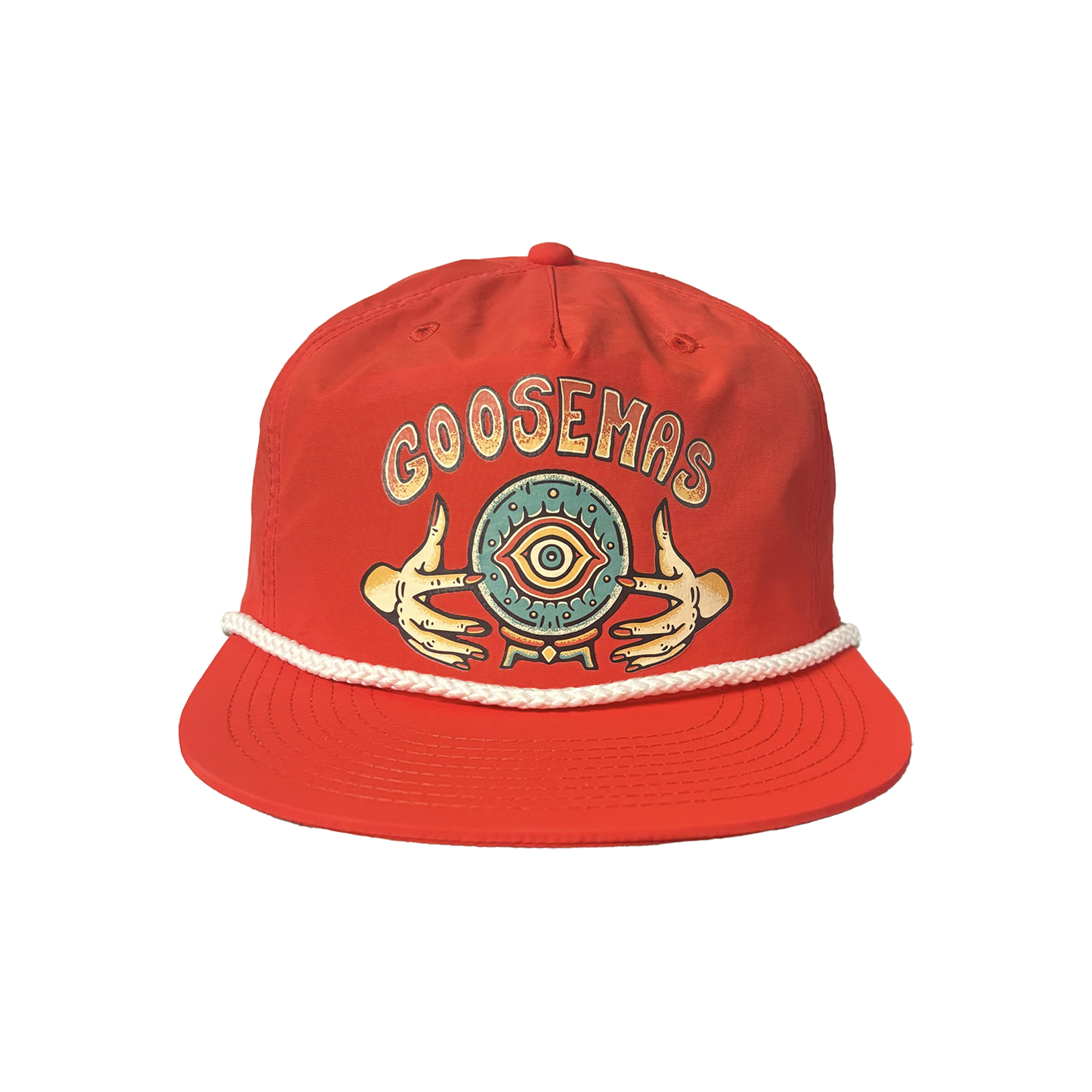 "Crystal Ball" design by Andrew Sax printed on the front of a nylon Surf Cap with adjustable snapback. One size fits most.